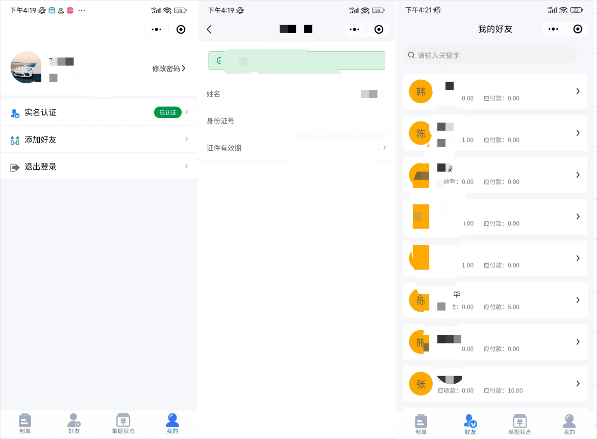 7.好友详情页面通常会展示好友的基本信息,包括电话号码、收据状态以及应收款金额和应付款金额等。这些信息有助于您更好地了解和管理与好友之间的交易和财务往来。在好友详情页面中,您可以看到好友的电话号码,这有助于您与好友进行联系和沟通。同时,收据状态会显示该好友的订单处理情况,例如是否已签收、待签收或全部订单等。这有助于您了解订单的流程和进行相应的处理。此外,好友详情页面通常还会显示该好友的应收款金额和应付款金额。应收款金额是指该好友应该向您支付的款项金额,而应付款金额则是指您应该向该好友支付的款项金额。这些金额的记录和管理有助于您与好友之间的财务往来更加清晰和准确。