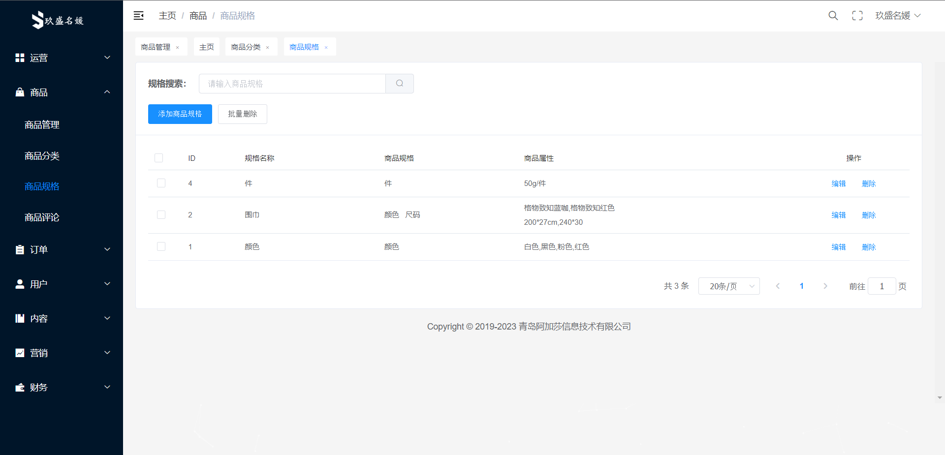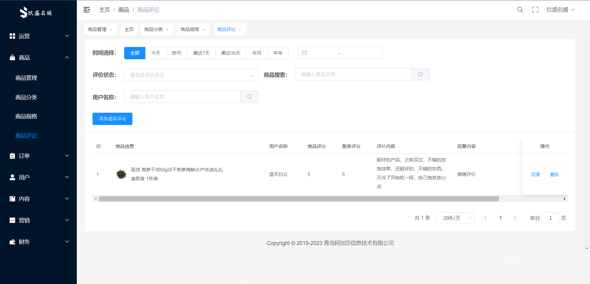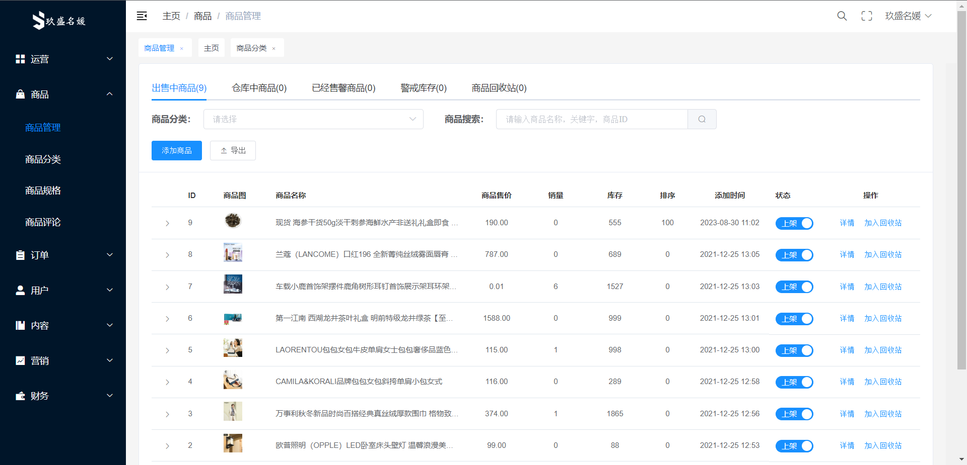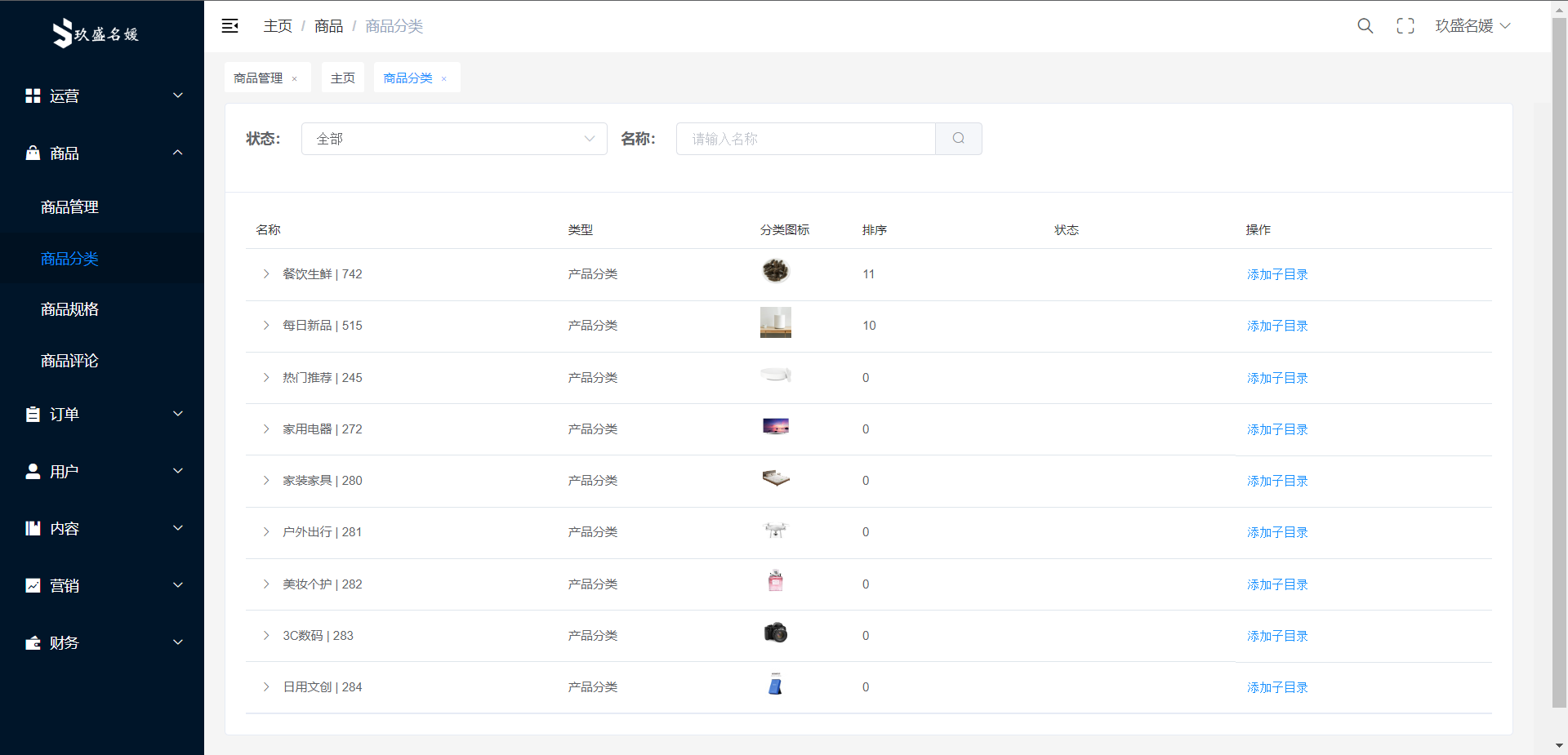 2.商品:商品管理,商品分类,商品规格,商品评论