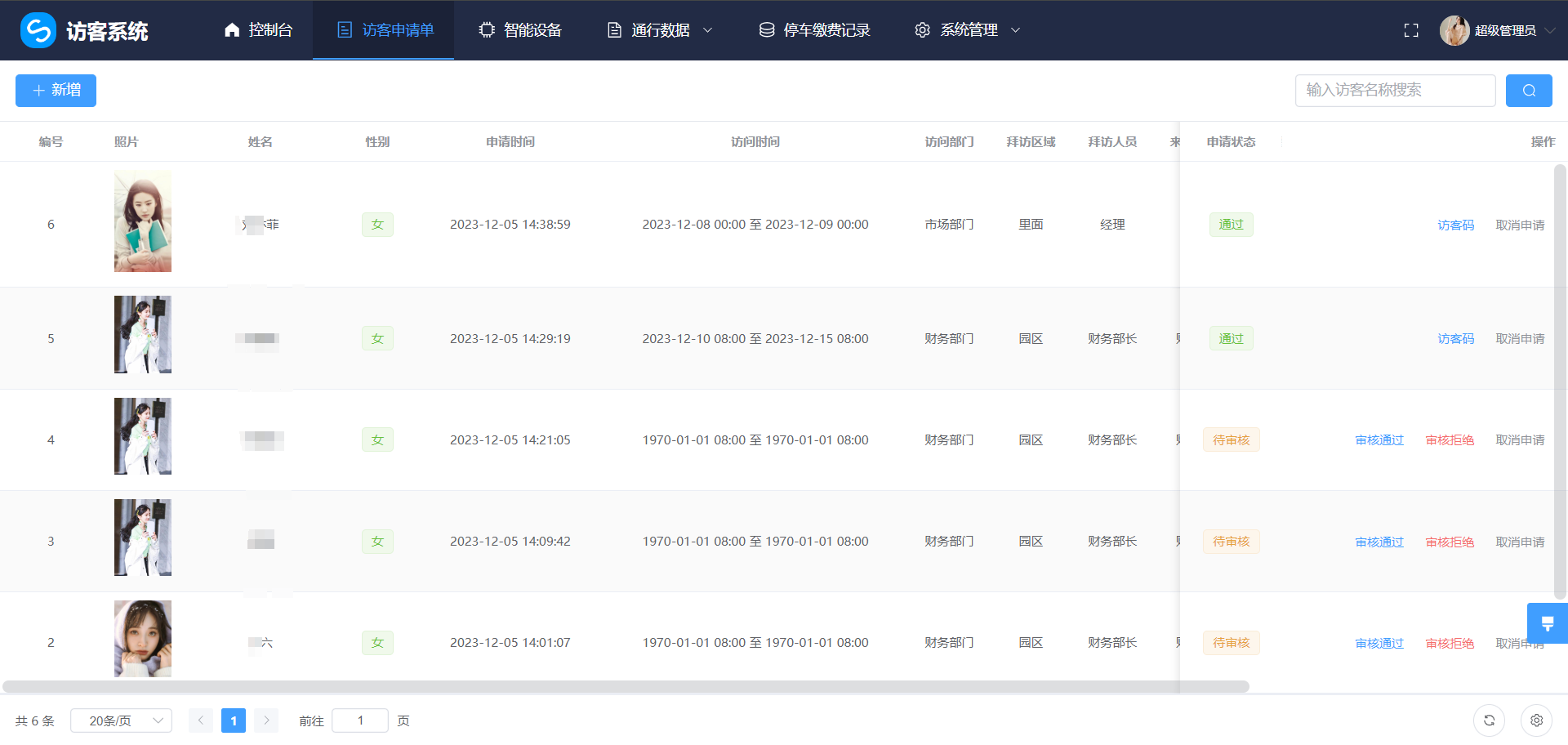 访客管理系统涵盖自助预约、VIP访客特邀、批量访客导入等多种预约模式,实现管理流程化、出入自助化,解决传统“眼看、口问、手写”人工管理模式。以管理为起点,联动不同业务系统,以优质的访问体验为目标,为访客提供自助出入、用餐消费、乘坐班车等更为丰富的服务体验,提升企业形象。